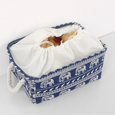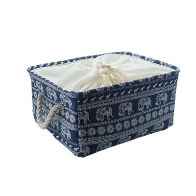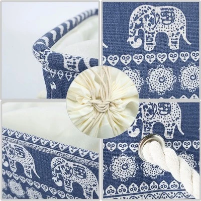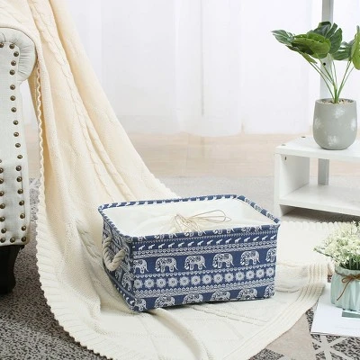 Multi-purpose Storage BinsPerfect for office, closet, bedrooms, bathrooms, pantry, desk, college dorm, craft area, storage bins are a fun and creative way to organize and store food, clothes, blankets, towels and more.Solid ConstructionThese bins are made from high-quality canvas fabric,Every storage container is equipped with two cotton rope handles designed to give you optimal tension and comfort while transporting. The material and construction offer a long-lasting bin that you can use over and over again.Callapsible DesignOrganizational bins are collapsible for easy storage. Fold up the bins and tuck the portable bins anywhere. These sturdy bins are great to keep in the trunk of your car for shopping trips or when transporting items for easy in-and-out storage.Drawstring Closure for Dustproof The laundry hamper has a cotton closure so that the dust wonβt go into your stuffs inside while not in use. The drawstring design also keeps your laundry private.Available Sizes:Small: 31 x 21 x 13cm/12.2″ x 8.3″ x 5.1″(L*W*H)Medium: 36 x 26 x 17cm/14.2″ x 10.2″ x 6.7″(L*W*H)Large: 41 x 31 x 21cm/16″ x 12.2″ x 8.3″(L*W*H)X-Large: 45 x 35 x 25cm/17.7″ x 13.8″ x 10″(L*W*H)Available Colors: Blue Elephant, Blue Fish, Gray Petal ,Gray Gypsophila,Blue Gypsophila,Grey Elephant,Blue Dinosaur, Star, . Note:1.Please allow 2-3cm error due to manual measurement.2. There may be creases because of folded package, but the creases would be minimised or disappear after using.