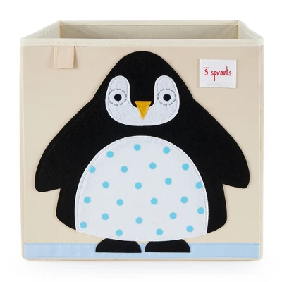 Keep your little one’s toys and clothes organized with the 3 Sprouts Fabric Storage Bin Bundle. These storage boxes are a great organizational tool for a nursery or playroom.One square fabric storage bin has an adorable, felt applique cat on the front and fits most storage units, while the other features a felt applique penguin. The animals bring a fun pop of color to any space, while the neutral background complements a variety of color schemes and decor themes.A convenient pull tab makes it easy for kids and adults to remove the cubby bin from shelving units. The fabric container is reinforced with cardboard for added durability. The storage bin is collapsible, making it easy to fold and store away when not in use. Use these square storage bins to organize toys, clothes, diapers, and more without detracting from the decor of the room. The 3 Sprouts Fabric Storage Bin Bundle is sure to delight your little one while keeping your home neat and clean.