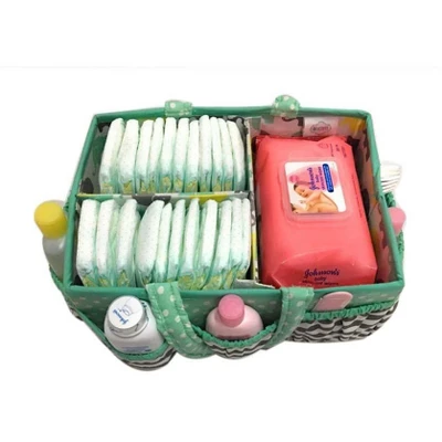 - Large enough for all baby necessities. Caddy measures 12.5″ long by 8.5″ wide by 6.25″ high and has flexible handles that each measure 1″ wide and 15″ long from end to end with a soft body and a removable T-separator on the inside.