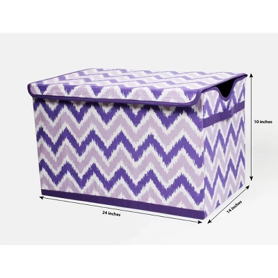 Your kiddo will learn to keep their space/playroom/gameroom/bedroom organized with the Knock-Down Storage Toy Chest from Bacati. Designed in a rectangular silhouette with Lid, this kids storage toy chest is great for storing anything from comic books or board games to small toys or craft supplies, while the closed lid-top design gives them easy access to its contents, and the two side handles make it easy to carry from one place to the other. Featuring a Bacati signature prints and pattern, it brings a sweet complement to their room decor. Great for stashing under their desks or in closets, it features a foldable design for efficient storage when not in use. Many cordinating items available to purchase separately in this Bedding Collection by Bacati. Size: 15 Inches (H) x 14.5 Inches (W) x 24.5 Inches (D). 2 side handles for easy carrying