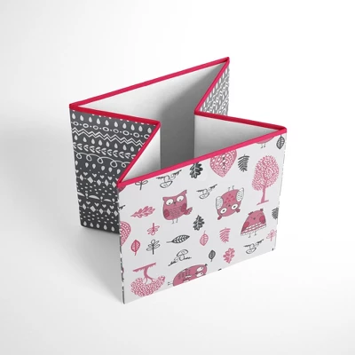Bacati – Owls Pink/Gray Girls Cotton Storage Box Small