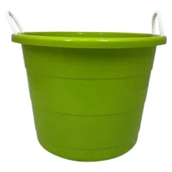 - Blue durable plastic construction with carrying handle for easy transport. Modular design offers easy stack ability.