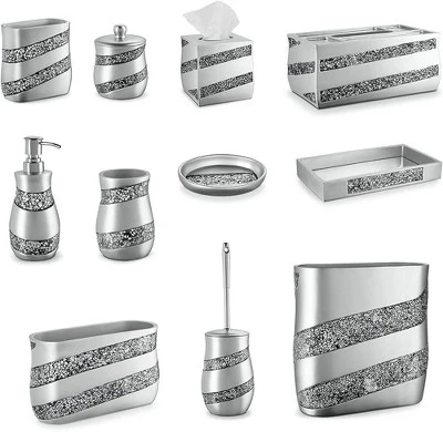 Give Your Bathroom an Impressively Exquisite TouchElegance in ActionWhether your bathroom has a contemporary look, a rustic feel, or more of a traditional décor, our Silver Mosaicbath accessories complement it with color, shape, and detailing that adds an instant splash of class. You’ll lovethe rich silver-gray look that blends into any color scheme, the soothing gentle curves, and the crackled glassdetailing that creates exquisite drama and eye-catching dance of light. Collect the bath accessories piece bypiece to end up with a bathroom that is not only functional but an elegant sight to behold.All about QualityUnlike metal that easily rusts or regular plastic that quickly cracks, these bath accessories are made using a high-graderesin that ensures maximum durability. All through the daily use and humid conditions of your bathroom, these beautifulpieces will remain in eye-catching condition for years to come. And we’ve carefully sized each accessory to ensure itsaves on valuable space while still exuding a captivating presence. Experience a hard-to-find marriage between superiorquality and great functionality.Here’s why you’ll love the Silver Mosaic collection:- Made using high-grade resin to ensure maximum durability.- Beautiful curves create a timeless look to suit any bath.- The silver-gray hue beautifully blends into any color scheme.- Perfectly sized to fit even tight-spaced bathrooms.- Unique design makes it a great gift for both men and women.Treat yourself or that loved one to the most beautiful bath accessories that bring on the functionality withoutskimping on quality. Click ‘Add to Cart’ now!