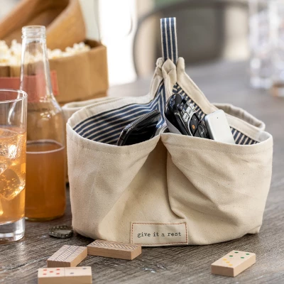 - Encourage positivity and happy family bonding with household items that celebrate the joy of togetherness; Cream phone caddy with blue stripe accents is a cute and effective household tool featuring the sentiment reading βGive it a restβ