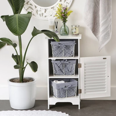 - Set includes 3 bronze wire baskets with removable gingham check fabric liners includes Small 9-inches Length x 7-inches Width x 6-inches height.