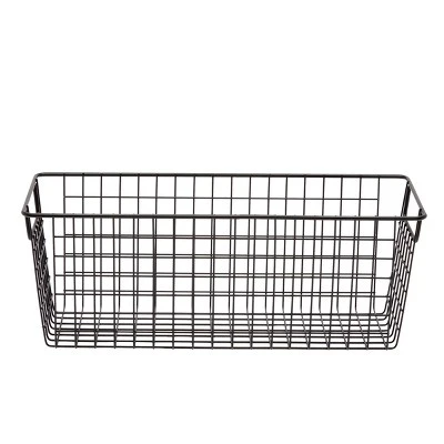 Farmlyn Creek 3 Pack Metal Wire Storage Baskets For Shelves, Pantry, Closet, Long Narrow Organizer Bin, Black, 16 X 6 X 6 In
