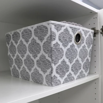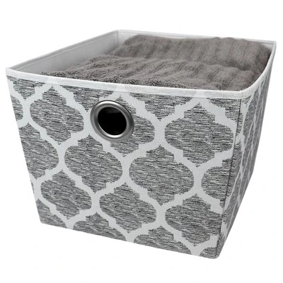 Ditch those plain and boring storage bins and upgrade with this eye catching storage tote. The tapered sides add a classy touch to any cube organizer or shelf. Made of breathable non-woven fabric, it features an eye-catching herringbone pattern. With firm and rigid sides, it maintains its shape for years to come. Grommet handles make it easy to grab and pull from a top shelf and slide out from a cubby organizer.