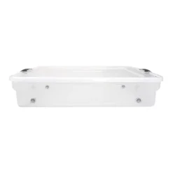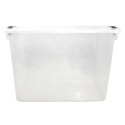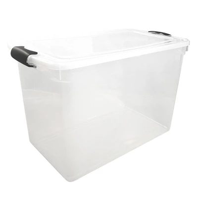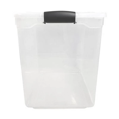 HOMZ 112 Quart Extra Large Rectangular Clear Plastic Storage Container Bins With Secure Latching Lid, Grey Latch, (2-Pack)