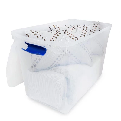 - VERSATILE TOTES: Set of (2) 112-quart containers are ideal for storing holiday decor, linens, clothes, craft supplies, toys, and more