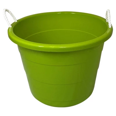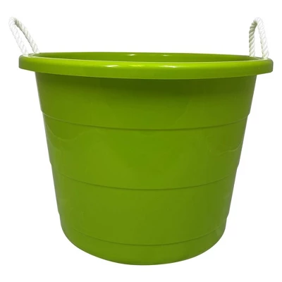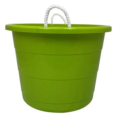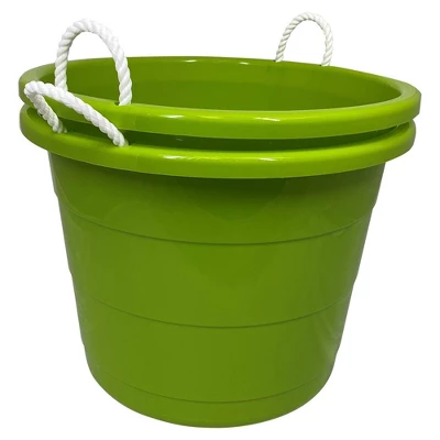 Homz 17 Gallon Indoor Outdoor Storage Bucket W/Rope Handles For Sports Equipment, Party Cooler, Gardening, Toys And Laundry, Bold Lime Green (2 Pack)