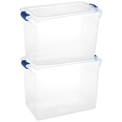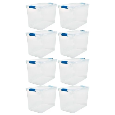 Get organized with the new Clear Plastic Storage Containers by Homz.This popular size container is ideal for a variety of basic household needs, such as sorting and storing away clothing, toys, linens, craft supplies, seasonal decorations and more! The ergonomic latching handles lock to secure the lid providing a comfortable grip for easy carrying. When locking, the lid snaps firmly into place to ensure all contents stay contained, concealed, and dust free.The indexed surface of the lid allows multiple totes to stack neatly on top of each other for efficient use of vertical storage space. It’s constructed from durable see-through plastic allowing you to see the contents without opening the container. The classic styling offers a refreshing, clean, and coordinated look.Pack your things away with the Homz Clear Plastic Storage Containers.