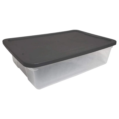 Tidy up the clutter underneath your bed and neatly store away your things with the 28-Quart Storage Containers from Homz. These under-bed clear storage containers are a great way to organize and provide additional storage space where you least expect it. These plastic storage containers are ideal for storing shoes, boots, clothes, seasonal holiday decorations, personal items, and more. Made to fit under most beds, these storage containers can be easily hidden to keep bedrooms clean. The see-through design enables you to identify the contents inside for a quick and efficient find of your things. Built with indexed lids, youβre able to stack each bin on top of the other to maximize storage space. With a spacious 28-quart capacity, these 2 containers with secure lids offer endless storage possibilities in many rooms around your home. Organize and declutter your space in an instant with the Underbed Plastic Storage Container Bins from Homz.