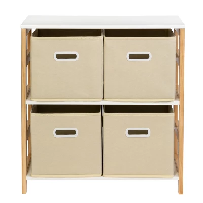 Declutter the chaos with this 4-bin organizer ideal for any kids room or playroom. Bins act as the perfect catch-all for toys, books, stuffed animals and anything else that needs a place up off the floor. Sturdy and with a natural color tone and look that fits in with any design aesthetic.