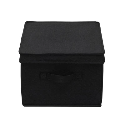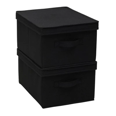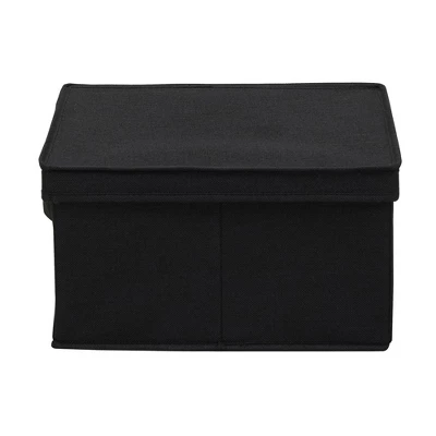 This set of 2 Large Storage Boxes with Lids from Household Essentials is sure to keep any room organized. They can hold a variety of items from small to bulky, such as linens, books, magazines, office supplies, sewing supplies, clothing accessories and much more. The boxes are made of quality poly-cotton canvas and reinforced sides allow them to be stacked to save space. Their stylish trim makes these bins attractive, without detracting from existing decor or styles. These storage boxes are a space-saver when not in use; the boxes fold completely flat to be stored away until needed. Use this pair of storage boxes anywhere in your home, office or dorm for elegant storage and organization. This Large Storage Box set pairs well with any decor style and can be used in a variety of ways throughout your home.