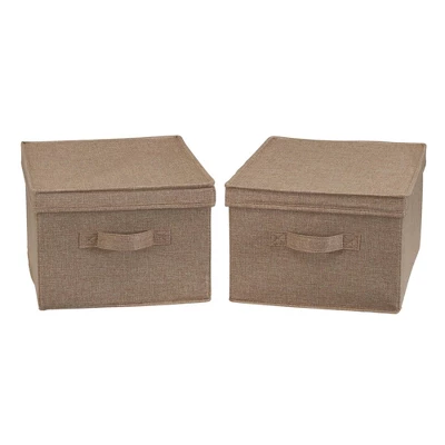 This set of 2 Large Storage Boxes with Lids from Household Essentials is sure to keep any room organized. They can hold a variety of items from small to bulky, such as linens, books, magazines, office supplies, sewing supplies, clothing accessories and much more. The boxes are made of quality poly-cotton canvas and reinforced sides allow them to be stacked to save space. Their stylish trim makes these bins attractive, without detracting from existing decor or styles. These storage boxes are a space-saver when not in use; the boxes fold completely flat to be stored away until needed. Use this pair of storage boxes anywhere in your home, office or dorm for elegant storage and organization. This Large Storage Box set pairs well with any decor style and can be used in a variety of ways throughout your home.