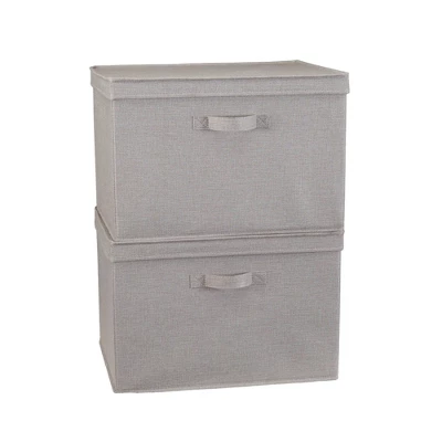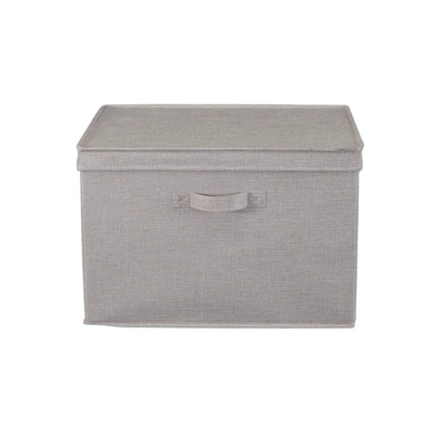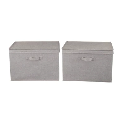 This set of 2 stylish Wide Storage Boxes with Lids from Household Essentials provide limitless organizational functionality. Their timeless design creates an aesthetically pleasing alternative for plastic totes or old shoebox makeshift storage solutions designed to hide clutter. Ideal in any home storage application, these boxes are perfect for bedrooms (sheets, pillow cases), bathrooms (towels, washcloths, toiletries), attics (collectibles, antiques), home offices (office supplies, craft supplies), or anywhere else clutter tends to collect. The storage boxes are made of a poly-blend linen and is reinforced with solid siding for added stability, durability, and stackability. Each box features a single decorative handle for easy, one-handed access at all times. These wide storage boxes blend neatly with any home decor and certainly don’t have to be relegated to out-of-sight areas. When not in use, the box folds flat and can be tucked away easily without taking up valuable excess space. Attractive and functional, these Wide Storage Boxes with Lid are the perfect solution for your home’s organizational challenges.