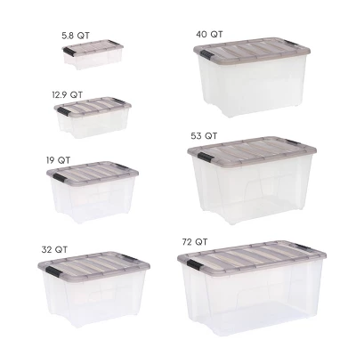 IRIS 8pk 4.25 Gallon Snap Top Plastic Storage Box Clear With Gray Lid