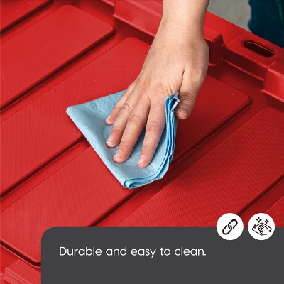 VERSATILE ORGANIZER – Storage Plastic Bin Tote Organizing Container with Durable Lid and Secure Latching Buckles preserve and protect valuables. Maximize the garage or any limited space with Made in USA Heavy-Duty tote to organize. The strong lid, body, and buckle combo blocks moisture, dust, liquids, and insects. Perfect to store and transport tools, camping gear, blankets, dog/ cat food, rice, flour, and more in or from the garage, basement, workshops, offices, construction sites, or metal shelves.BUCKLE UP – The multi-Buckle box latches strongly and securely onto the durable lid, separating the inside and outside. Perfect for storing clothes, documents, food, hunting gear, camping gear, tool storage, truck storage and other large items. STACK THEM UP – Plastic Heavy-Duty Storage Container Bin Tote has grooves on the lid and body to create a secure stacking experience. IRIS USA lid-body construction ensures stability to stack securely for easy moving, and save space in your house, apartment, condo, and in your car and truck. GREEN CIRCLE CERTIFIED and BPA FREE Plastic – Certified by Green Circle for environmentally friendly plastic airtight storage container. It is also BPA-Free plastic. Great use for organizing the pantry, garage, and basement by storing and protecting rice, flour, canned goods, spices, seasonings, snacks, pasta, pet food, and etc. GREEN CIRCLE CERTIFIED and BPA FREE Plastic – Certified by Green Circle for environmentally friendly plastic airtight storage container. It is also BPA-Free plastic. Great use for organizing the pantry, garage, and basement by storing and protecting rice, flour, canned goods, spices, seasonings, snacks, pasta, pet food, and etc.