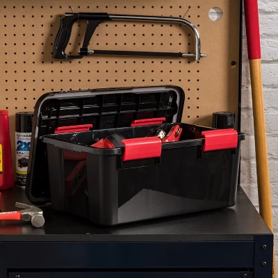 IRIS USA WeatherPro™ Bin Tote Organizing Container, Black/Red