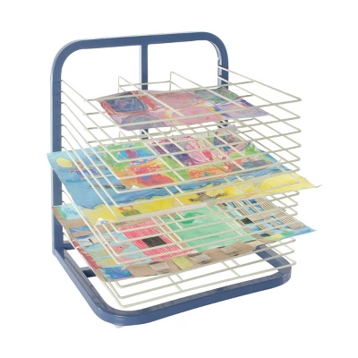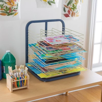 Store children’s works-in-progress safely and without making a mess using this tabletop Multipurpose Drying Rack. Removable wire racks provide easy access to paintings or projects on any of the many levels. Easy-to-clean racks and small scale make this durable piece an ideal addition to the classroom. Measures 20.5″L x 17″W x 22.25″H.