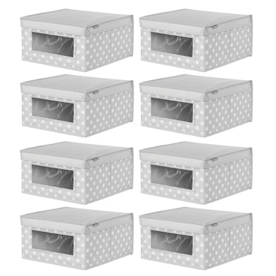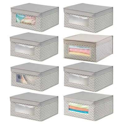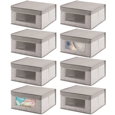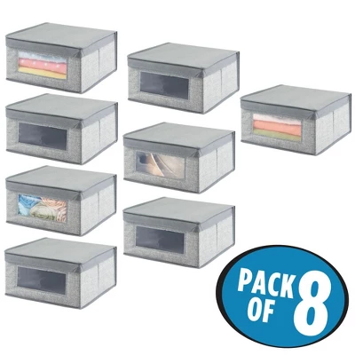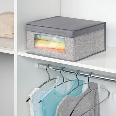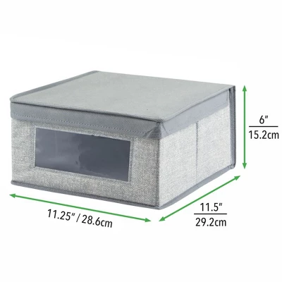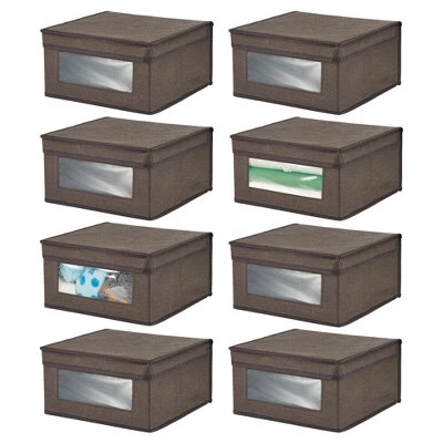 These Fabric Storage Boxes by mDesign are perfect for keeping your closets organized and clutter-free. They offer roomy space for storing out of season clothing, shoes, purses, scarves, bedding, linens, and more. The clear window lets you see the contents without having to open the attached the lid. The classic fabric adds stylish storage to any bedroom closet, laundry area or other storage space in your home.