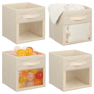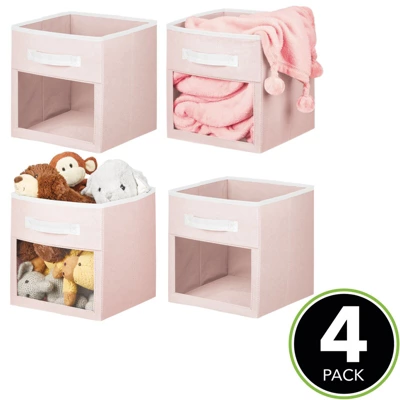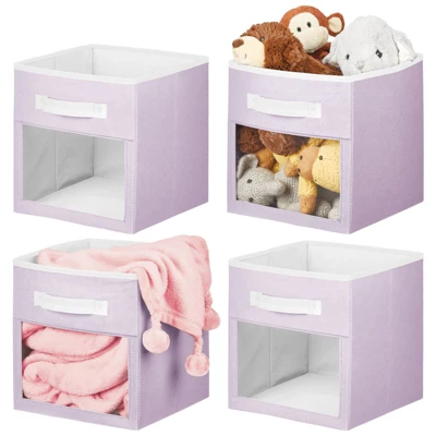 These Fabric Storage Boxes by mDesign are perfect for keeping your nursery closets organized and clutter-free. They offer roomy space for storing blankets, onesies, stuffed animals, diapers and other necessities. The attached handle makes it easy to move the organizers on and off closet shelves. The clear window lets you easily see the contents stored inside. The polka dot pattern offers a fun and whimsical look to any bedroom closet, laundry area or other storage space in your home.
