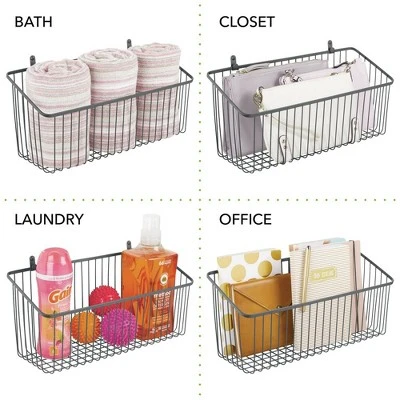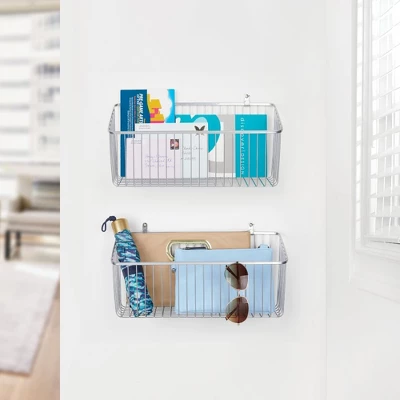 Add instant storage to your home with this Portable Storage Basket with Hooks from mDesign. The tray basket arrives with hooks that are mounted to the wall, so you can hang your storage basket and retrieve it when you need it. This bin adds extra storage in an entryway, mudroom, laundry area, kitchen, bathroom or anywhere around the home. The steel wire construction provides stability and a modern look to a wall space while putting convenient storage at your fingertips.