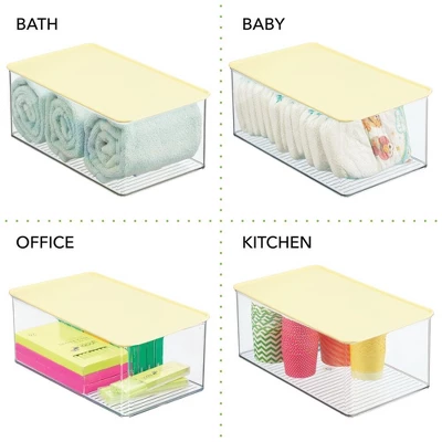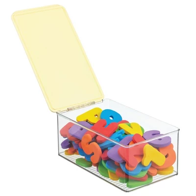 Keep your child’s favorite superheroes, action figures and other toys in one convenient location with the Stackable Toy Box Bin from mDesign. The space-saving box lets you create vertical storage to make the most out of your closet shelf and floor space in a child’s bedroom or playroom. Keep coloring books, crayons, small farm animals, dolls, doll clothes, craft or art supplies, paints, brushes, glue, glitter, and other playtime activity items neatly stored in a see-through bin that offers quick access anytime. Always know exactly where your child’s favorite toys are. This toy storage bin features a hinged lid to keep everything inside and contained. Its stacking feature allows you to stack multiple bins to make stashing toys away easy and convenient.