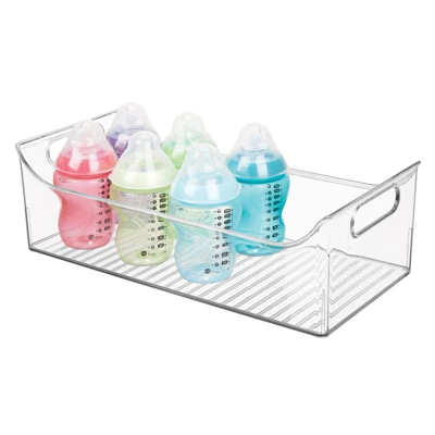 This Slim Storage Bin from mDesign is perfect for organizing baby and kids supplies. Easily store all of your little one’s favorite snacks, drinks, and foods. We make it easy for you to organize like a pro. Convenient and versatile, these bins can be used all over the home, not just in the nursery or playroom! The handy carrying handles make them portable. It’s easy to create the storage solution that works best for you – in any room of your home. modern living by Design.