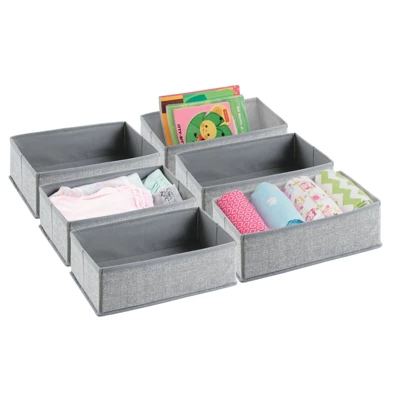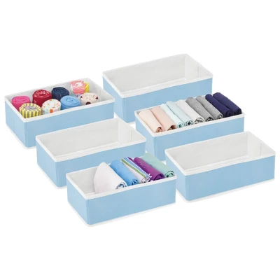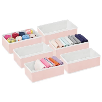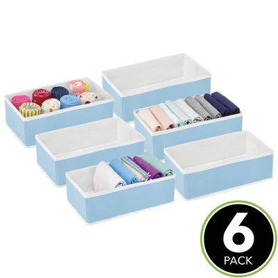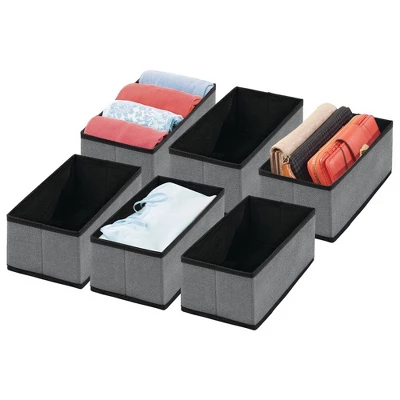 These Fabric Drawer Organizers by mDesign are the perfect solution to conquering cluttered dresser drawers, bedrooms and closets. They help you create customized, coordinated storage so you can keep articles of clothing, daily essentials and accessories at your fingertips. The open tops make contents easily visible and accessible. Use them to organize the closet, dresser top, drawers and any area in need of a little organization!
