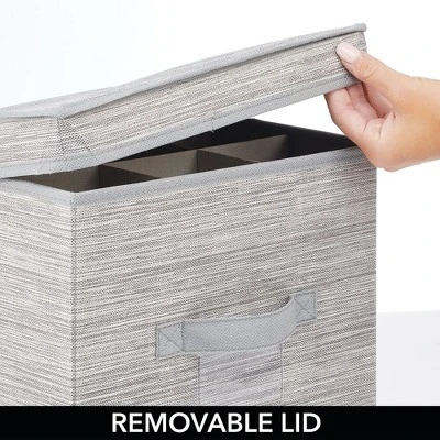 These Stripe Storage Cube with Lid and Dividers are perfect for keeping your closets organized and clutter-free. They offer roomy space for storing gift wrapping items and other necessities. The open tops make it easy to see what’s inside and quickly grab what you need. The attached front handle makes moving on and off shelves easy in any bedroom closet, laundry area or other storage space in your home.