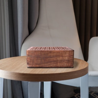 - This decorative storage boxes stands out in its intricate hand carvings, delicate cut-outs, & medium polish finish.