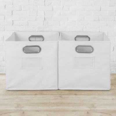 Find your Niche with versatile and modern Niche Fabric Storage Bins! Strong and durable, these bins each include a reinforced bottom panel that adds an extra layer of stability. With the bottom panel in place, they are sturdy enough to use on their own to hold files, scrapbook paper, children’s toys, towels, craft supplies and more. The bottom panel comes out and the entire bin folds flat for easy storage when not in use. Folded bins even fit perfectly inside an open one! Chrome handles are built into two sides of the bin, which makes carrying and moving it easy and worry-free. Inset handles are stronger than sewn-on cloth handles and won’t come unstitched or separate at the seams like cloth handles could. Measuring 12 x 12 x 12, Niche Fabric Bins are truly square and integrate seamlessly into Niche Cubo storage cubes. They can be used in any direction- there is no “right” side to face front because all sides measure the same! Personalize your bins by using the clear label holder on one side. Quickly and easily identify contents or assign bins to individual students. Ideal for every room in the house, make this set of 2 White Niche Folding Fabric Bins a part of your home or office today!