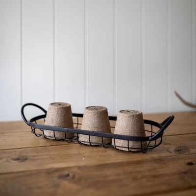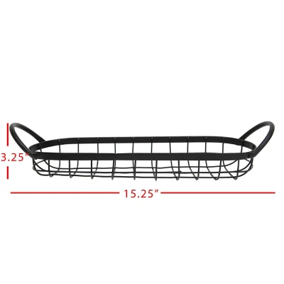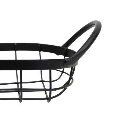Add a perfect touch of modern farmhouse with this wire basket. The size and utilitarian handles make this not only a great storage solution but adds a simple yet textural element to your home. The sleek, matte black finish keeps it neutral, making it a very transitional option for living areas, the kitchen, or even bathrooms. It is also the perfect size for your morning collection of eggs from the coop!