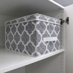 Home Basics Arabesque Large Non-Woven Open Storage Tote, Grey