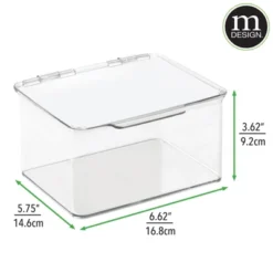 MDesign Plastic Stackable Bathroom Organizer Bin, Hinged Lid – 8 Pack