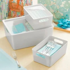 MDesign Plastic Stackable Closet Storage Bin Box With Lid, 4 Pack