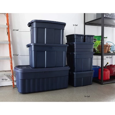 If you’re tired of storage containers that crack under the weight of being stacked and stored, it’s time to make a change. The Rubbermaid Roughneck 18 Gallon Rugged Storage Tote is built to be endlessly reusable. Made of impact-resistant material, these totes withstand harsh temperature changes from 0 to 110 degrees, so you don’t have to worry about your items being impacted by the cold or hot weather. These rugged containers are equipped with a stay tight lid that protects contents from moisture and pests no matter where you use or store it, making long-term storage a simple option. They are stackable without cracking or buckling, are easy to carry, and are washable for easy maintenance. Outer dimensions measure (L x W x H) 23.88 x 15.88 x 16.38 inches and inner dimensions measure (L x W x H) 17.5 x 10.75 x 16.25 inches.A versatile storage solution for use season after season, this 12-pack of Roughneck 18 Gallon Rugged Storage Totes from Rubbermaid is a smart choice.