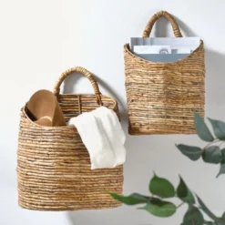 Set Of 2 Baskets White Seagrass & Rope By Foreside Home & Garden