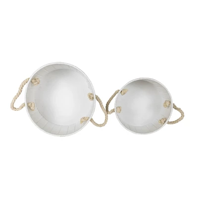 Foreside Home & Garden brings you this set of two textural baskets with a cement-like white finish. Accented with a gray-wash for detail, the embossed vertical ribbing adds texture to complement your boho aesthetic. These pieces are a great accent for small greenery. Two cotton rope handles on each basket add a soft, functional touch. A simple yet modernized design that is both durable and stylish.
