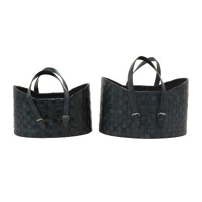 - •Buckle strap handles and a wide oval storage space makes these 2-set leather baskets a chic and convenient choice