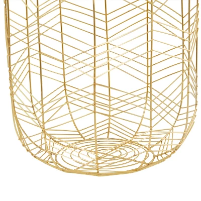Organizing isn’t boring when you have amazing storage baskets to fill. Keep your space tidy and neat with the help of these storage baskets. Store your belongings or laundry with these storage baskets that adds a hint of glam in your bathroom, bedroom, or living room space. This item ships in 1 carton. Suitable for indoor use only. This item ships fully assembled in one piece. Leather and hair on hide are natural products, and therefore no two will be alike. There may slight variations in pattern, natural blemishes, colors, and overall aesthetic of the product. Maximum weight limit is 5 lbs. Made in India. This gold colored basket organizer comes as a set of 3. Glam style.