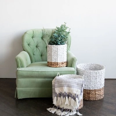 - Style: This set of 3 baskets are made from natural water hyacinth and metal and display a stunning two toned color.