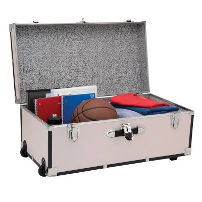 The Seward Explorer 30″ Trunk is the perfect storage solution for any room in your home and on the go. It is a camper’s ideal packing solution as well as a dorm dweller’s mobile furniture piece with ample storage. This trunk features classic nickel hardware with black binding and nickel corner guards. The dual lock-down latches help keep dust and moisture out. The center latch features a push-button latch with a locking feature (includes keys). Add a padlock for additional security. The trunk also has two handles, one on the front and one on the side for easy moving and control.