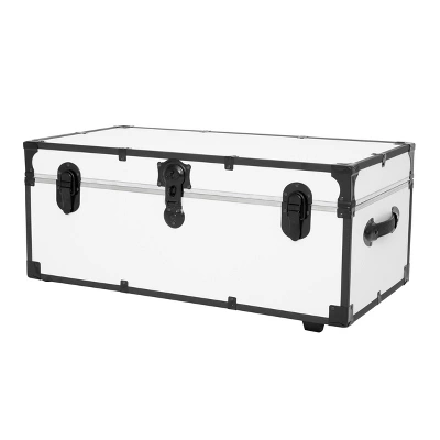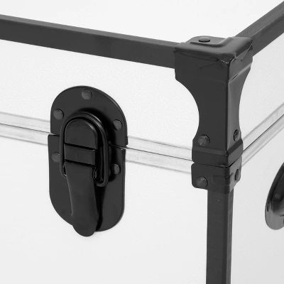 The Seward Rover 30″ Trunk is the perfect storage solution for any room in your home and on the go. This wheeled trunk is a camper’s ideal packing solution as well as a dorm dweller’s mobile furniture piece with ample storage. It features classic nickel hardware with black binding and nickel corner guards. The dual lock-down latches help keep dust and moisture out. The push-button center latch has an optional locking feature (includes keys). For additional security, add a padlock. The trunk also has one front handle, and one side handle for easy moving.