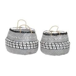 2pc Rectangle Rustic Wood And Metal Basket Set Brown – Stonebriar Collection