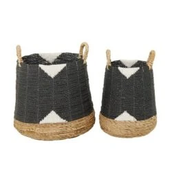 Set Of 2 Baskets White Seagrass & Rope By Foreside Home & Garden