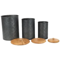 Set Of 3 Black Embossed Galvanized Metal Decorative Storage Canisters – Foreside Home & Garden