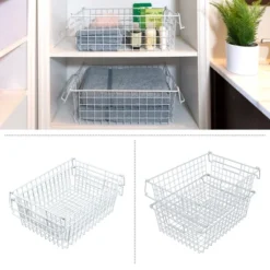 Set Of 3 Baskets White Metal & Reed By Foreside Home & Garden