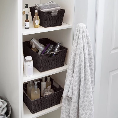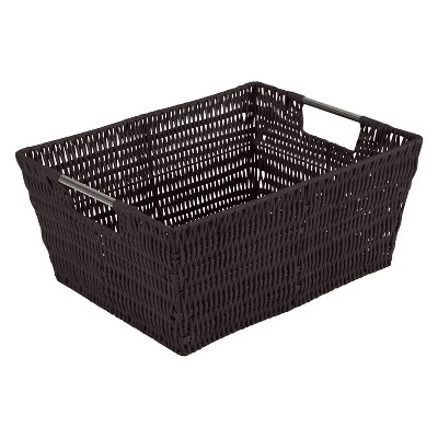 Organize and create storage in your home with the Simplify Rattan Tote Basket Collection. Simplify’s Rattan Tote is a PE Basket with an iron frame and 2 sturdy stainless steel carry handles. It is strong and durable prolonging it’s life, and it’s lightweight design makes it easy to lift and carry. Fits any home decor with it’s wide selection of colors. Store your household belongings and organize space with these stylish baskets. stack them together in a corner of your craft area, home office or dorm to keep your essentials close at hand in an organized manner.
